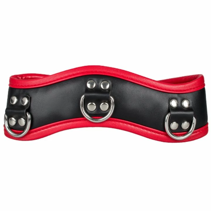 At the back, the adjustable strap fastens using a buckle for a truly secure fit! Enhance your restraint by adding leashes and accessories to the three D-rings along the front.