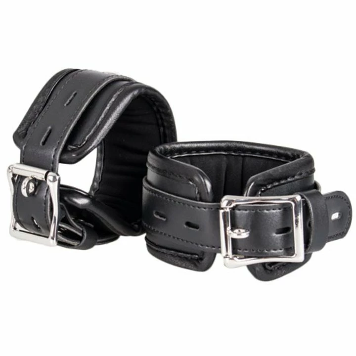 The faux leather fabric creates a look thatβs perfect for bondage play, while the padded inner is soft and comfortable against the skin. Connected by trigger hook clasps, you can easily detach the cuffs for versatile restraint.