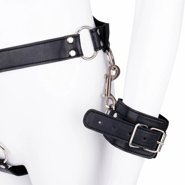 β’ Detachable wrist restraints buckle from 8 to 11.5-inches for versatile bondage