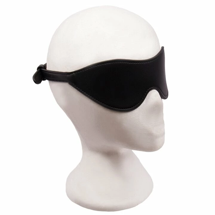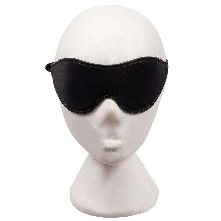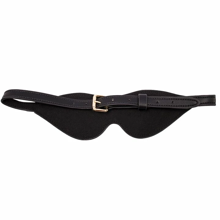 This bondage blinker is expertly crafted from black faux leather with gold-tone accents for a stylish look.
