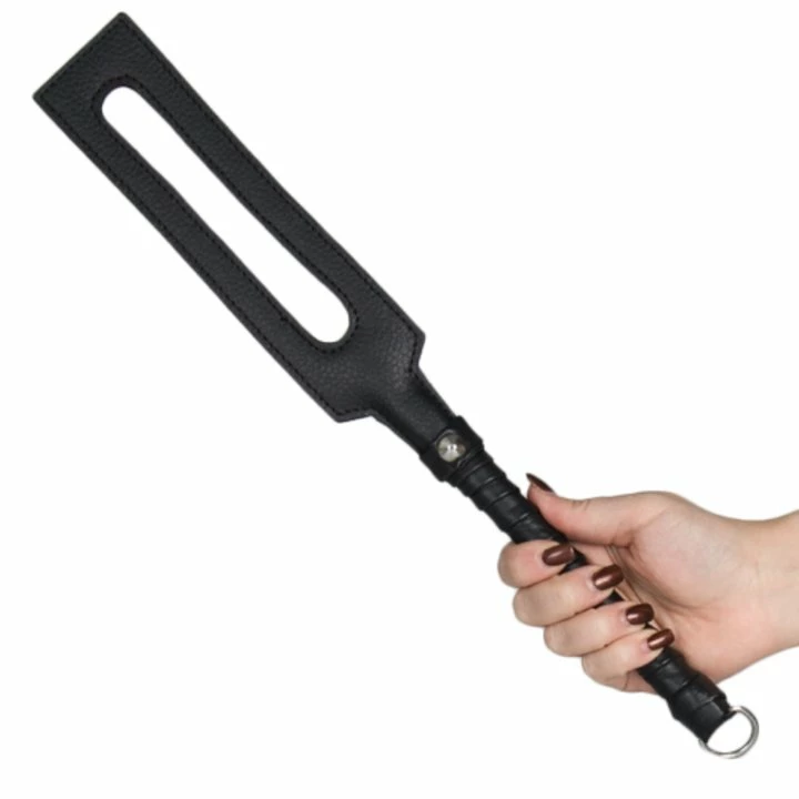 Leave a lasting impression on your submissive partnerβs bottom with the Obey by Bondara Real Leather Cut Out Spanking Paddle. With a supple, flexible design, every slap and spank lands sharply against their skin. Meanwhile, the cut-out centre decreases air resistance for intensified stings. It wonβt be long before your sub is begging for mercy!Β