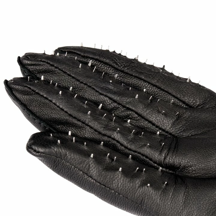 Take complete control of the impact of each smack with these luxury leather gloves. Find pleasure in pain as each swing punctures your submissiveβs skin with a delicious stinging sensation. Alternate between soft, smooth palms and wickedly sharp fingers covered in rows of metal teeth for a vicious bite!