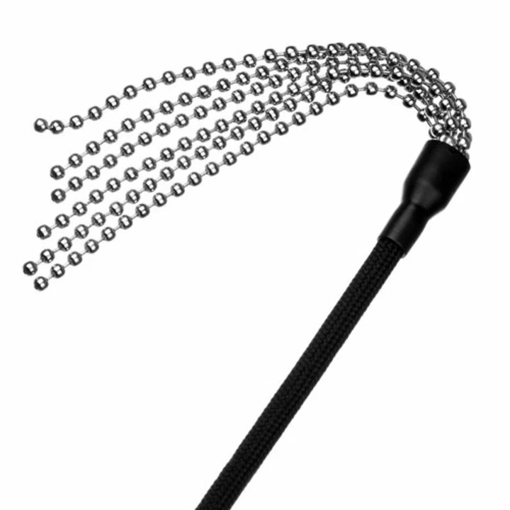 If you love to indulge in domination play or you are look to a more extreme toy to dish out your pleasurable punishments with, then this unique Metal Beads Riding Crop from Bondara is equipped to deliver. This riding crop is black with six tails of silver metal beads on the end. You can provide cool and trailing caresses, light stings and harsh whips with this one toy, perfect if you want to experiment with pain play in the bedroom. This high quality beaded crop will make an exciting new addition to your kinky collection.Β