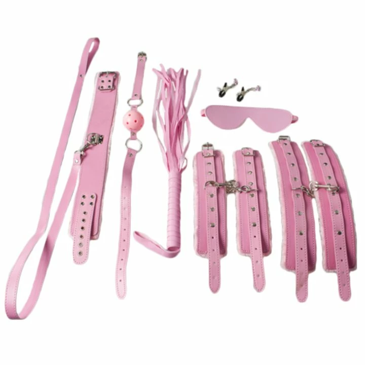 Be the prettiest sub of them all with the Pink Faux Leather Furry 8 Piece Bondage Set from Bondara! With a pink design and plush inners, this faux leather set is perfect for bringing a more playful look to your bondage play.