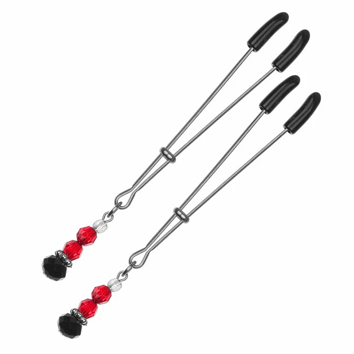 Bondara Adjustable Nipple Tweezers with Beads: Introduce a pinch of pain with these tweezer-style clamps. Designed to grip around the nipple, easily adjust the intensity of the sensation while the beads create a titillating look.Β