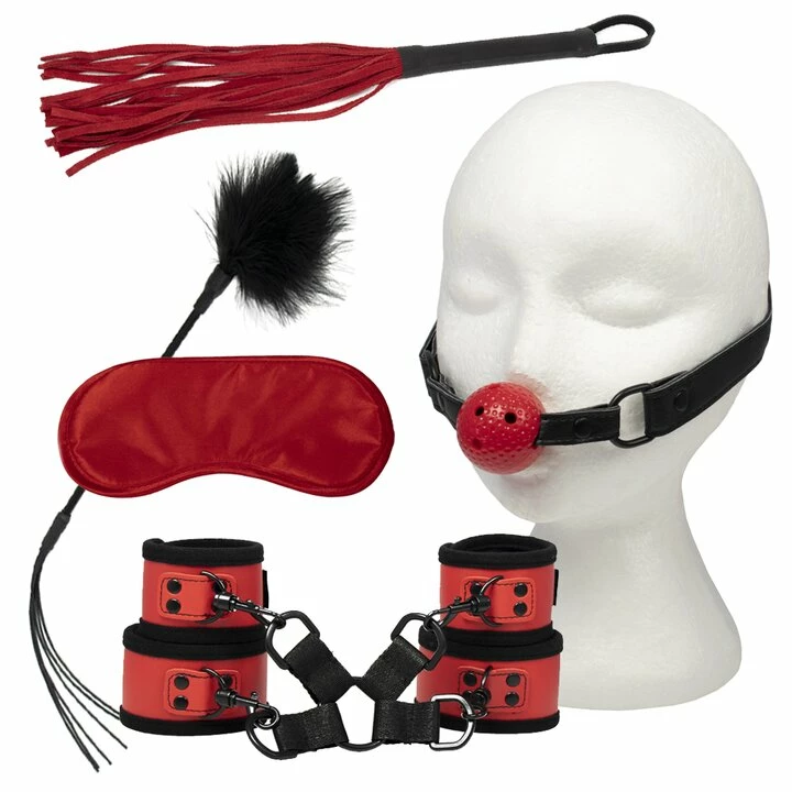 Indulge in a night of bondage play with the Bondara Red Tie and Tease Bondage Set. This five-piece bundle will have you exploring restraint, spanking and sensory deprivation for all kinds of mischief. The set includes: