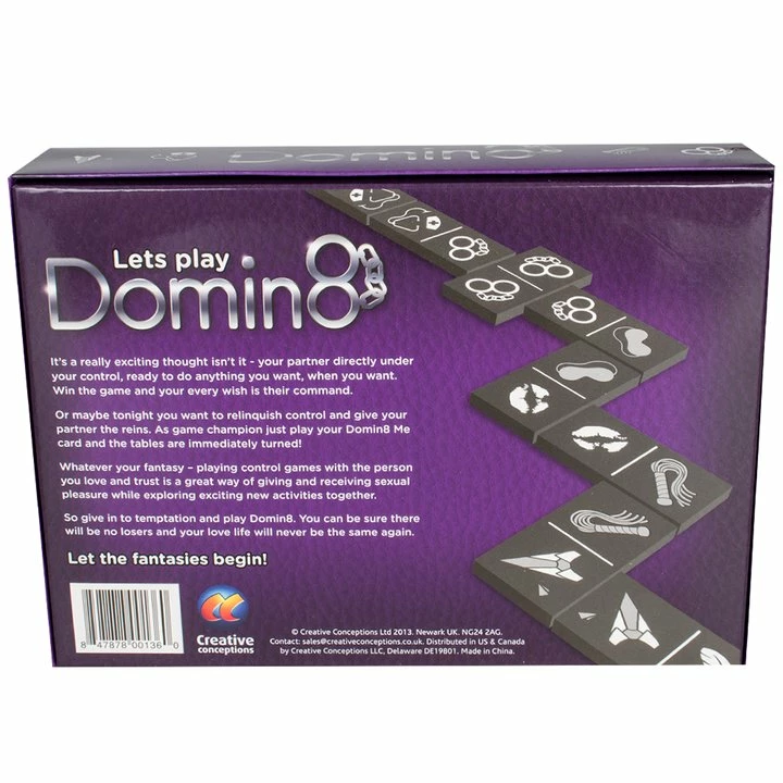 Domin8 Couples Game allows you to take control of your playmate or let them Dominate you during a game of erotic exploration. Domin8 is the exciting Dominance and submission game for couples where you perform kinky tasks based on the cards you are dealt. The winner of Domin8 enjoys the power to control but completing the erotic tasks together will ensure there are no losers. A commanding game that is fun for couples of any sexual preference! Domin8 includes a rule sheet, 28 task cards and 36 Domin8 Dominoes.Β
