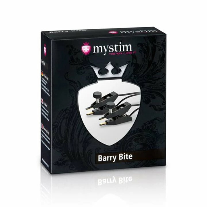 Get ready to gasp with Mystim’s Barry Bite Bipolar Electro Sex Nipple Clamps for surging satisfaction!