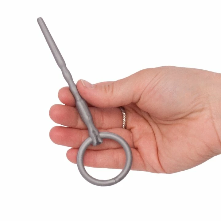 Live your boldest bondage fantasies with the Bondara Silver Ripple Penis Plug Stretcher with Through-Hole. With a gently tapered body that ripple towards the centre, he’ll feel the variety of sensations and a gradual stretch as you slowly insert this tapering urethral plug into his throbbing cock. Unlike most penis plugs that physically prevent ejaculation, this uniquely shaped silicone material is hollowed so he can cum and piss as he pleases! Made from hygienic silicone for easy cleaning, the velvety-smooth plug has a flexible body that curves to the natural shape of the penis – Just add a drop of your favourite water-based lube for gentle insertion. To remove, the pull-ring at the top allows maximum control. This unique penis plug is great for cock bondage beginners as it offers comfortable, risk-free play.