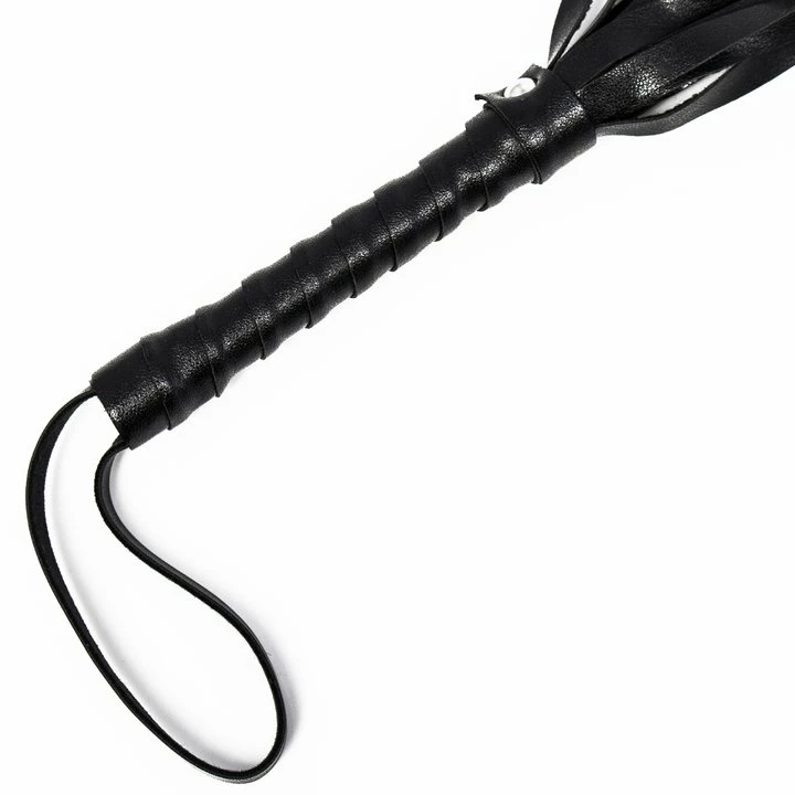 β’ A black studded flogger that has both a stunning visual and physical impact