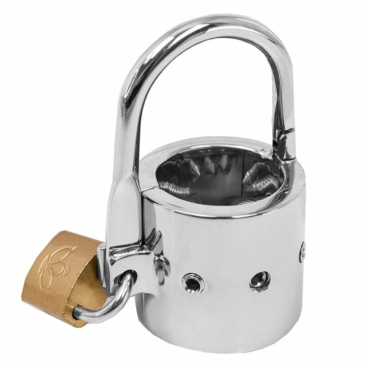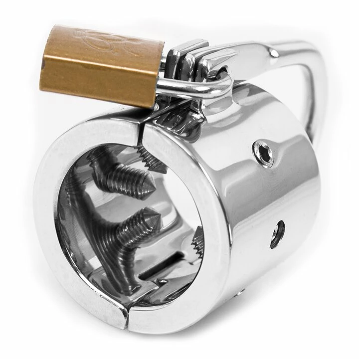 To inflict grave humiliation; gradually turn the screws to exact a vicious, yet measured punishment unto your sack, while the splitter separates your testes and provides a great place to weigh you down where you need it most. Perfect for punitive punishment, hand over the key of this kinky contraption to your captor for the ultimate in scrotal control.