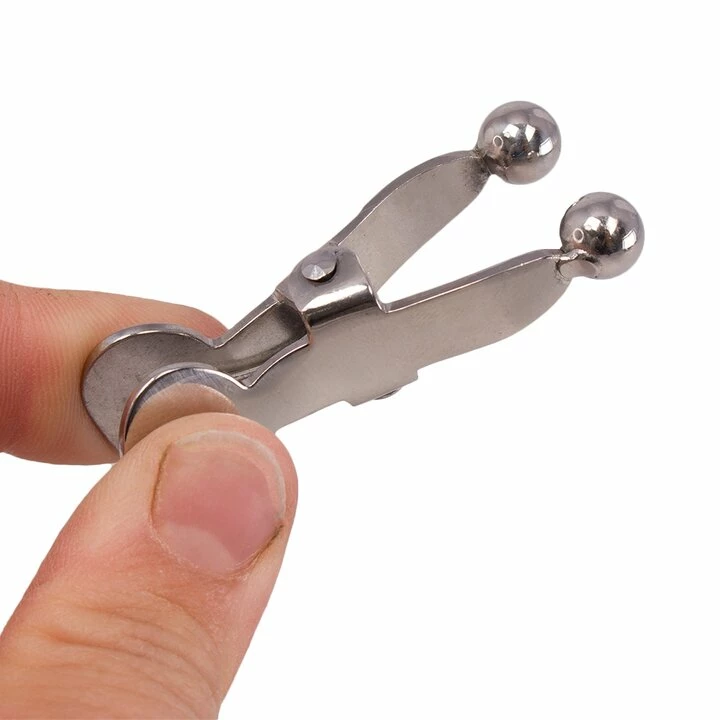 To place, press open the jaws, position the smooth ball bearings on either side of each nipple, and release to unleash the intense pinching power onto your willing sub. Each clamp constricts a fixed pinching pressure around your submissiveβs hot spots until you are ready to withdraw the discomfort (or the safe word is uttered).Β