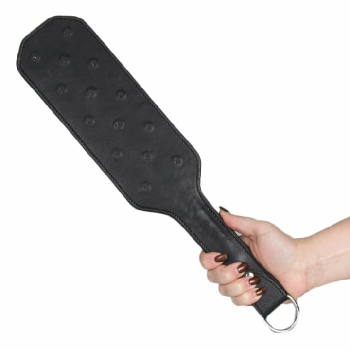 β’ Sadistic spanking paddle is covered in spikesΒ